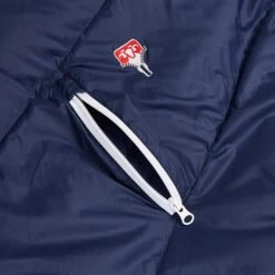 Auffällig ist der lange Reißverschluss auf der Oberseite. Er ist leicht zu öffnen und erlaubt auch die Öffnung von der Fußseite aus. Durch den runden Verlauf kannst du deine Füße aus dem Schlafsack stecken und auf der Oberseite ablegen. Eine kleine Außentasche ermöglicht dir außerdem das Verstauen deiner Brille oder Stirnlampe, um die wichtigsten Gegenstände immer in Griffweite zu haben.
