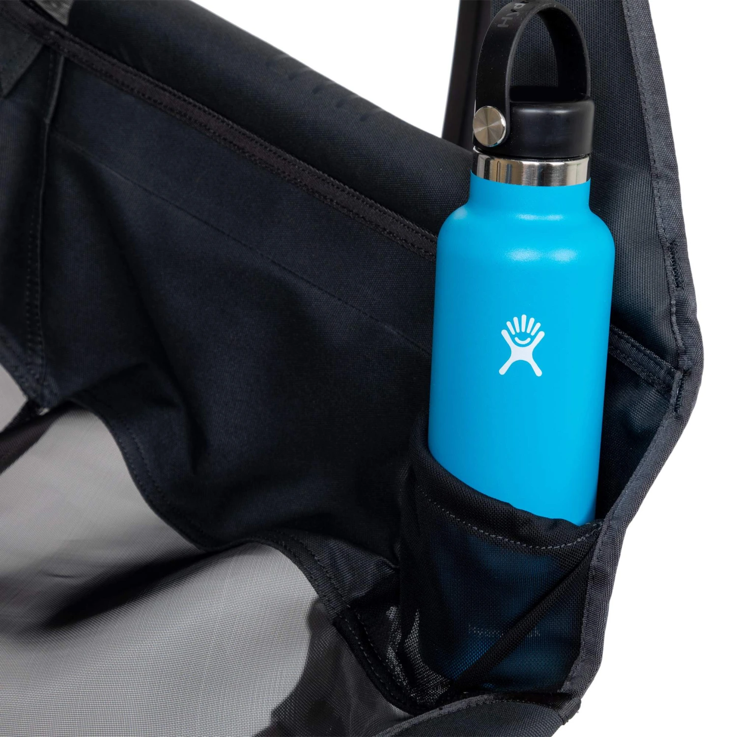 Verpackt in einer gepolsterten Tragetasche, kannst du den Stuhl bequem in einer Duffle oder deinem Tagesrucksack verstauen. Der Aufbau ist kinderleicht. Die Gestänge sind mit einem Gummizug verbunden, wodurch der Aufbau intuitiv gelingt.